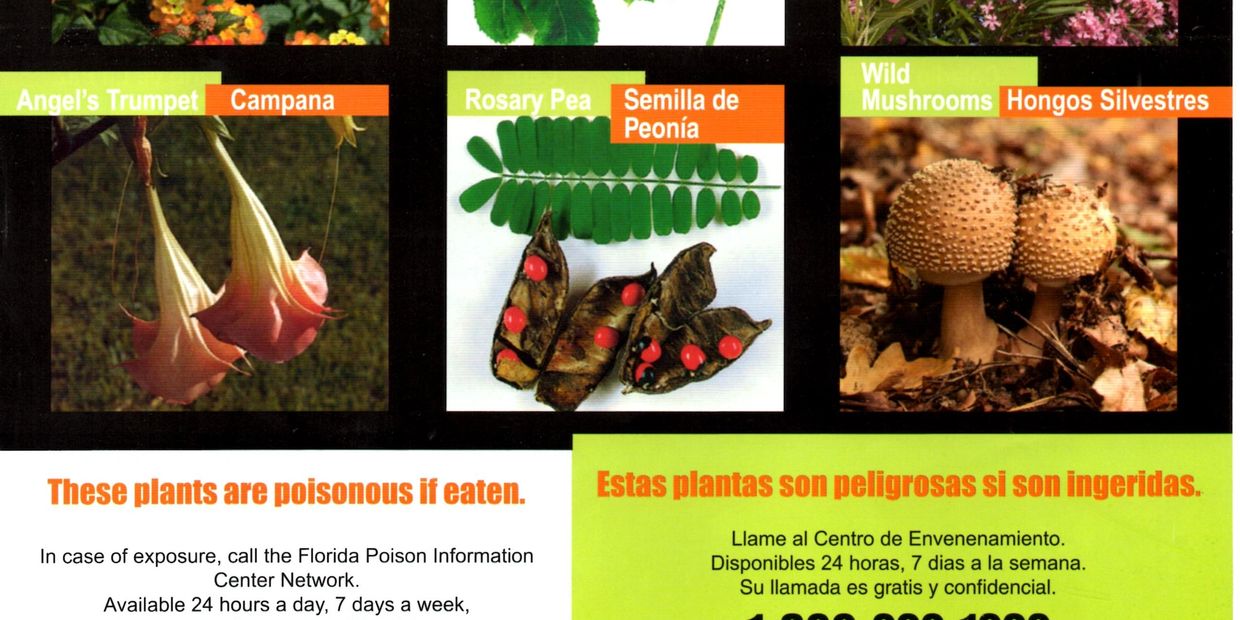 In case of exposure, call the Florida Poison information Center Network: available 24 hours a day, 7 days a week, call are free and confidential: 1-800-222-1222